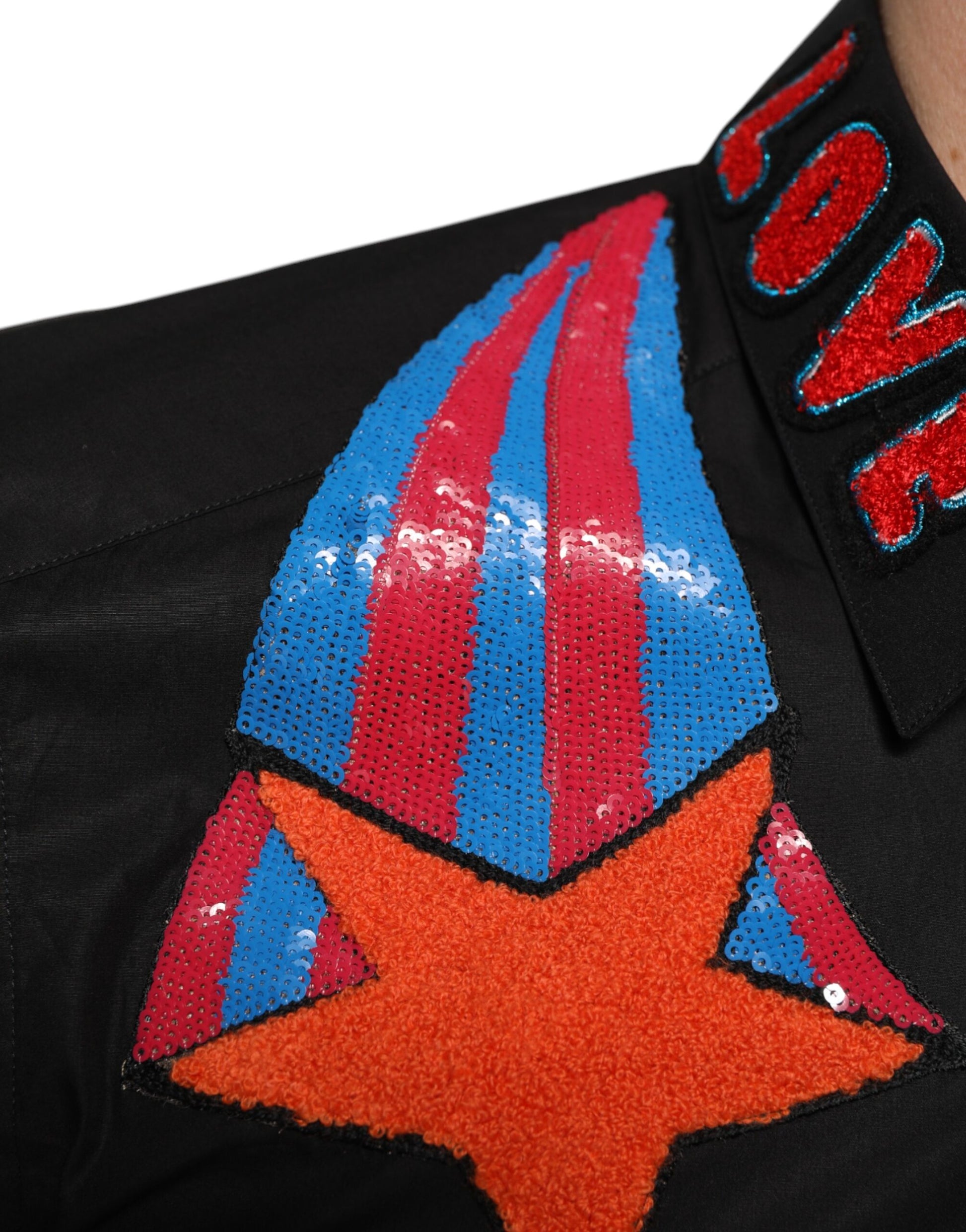 Dolce & Gabbana Black Cotton Star Sequin Dress Formal Men Shirt