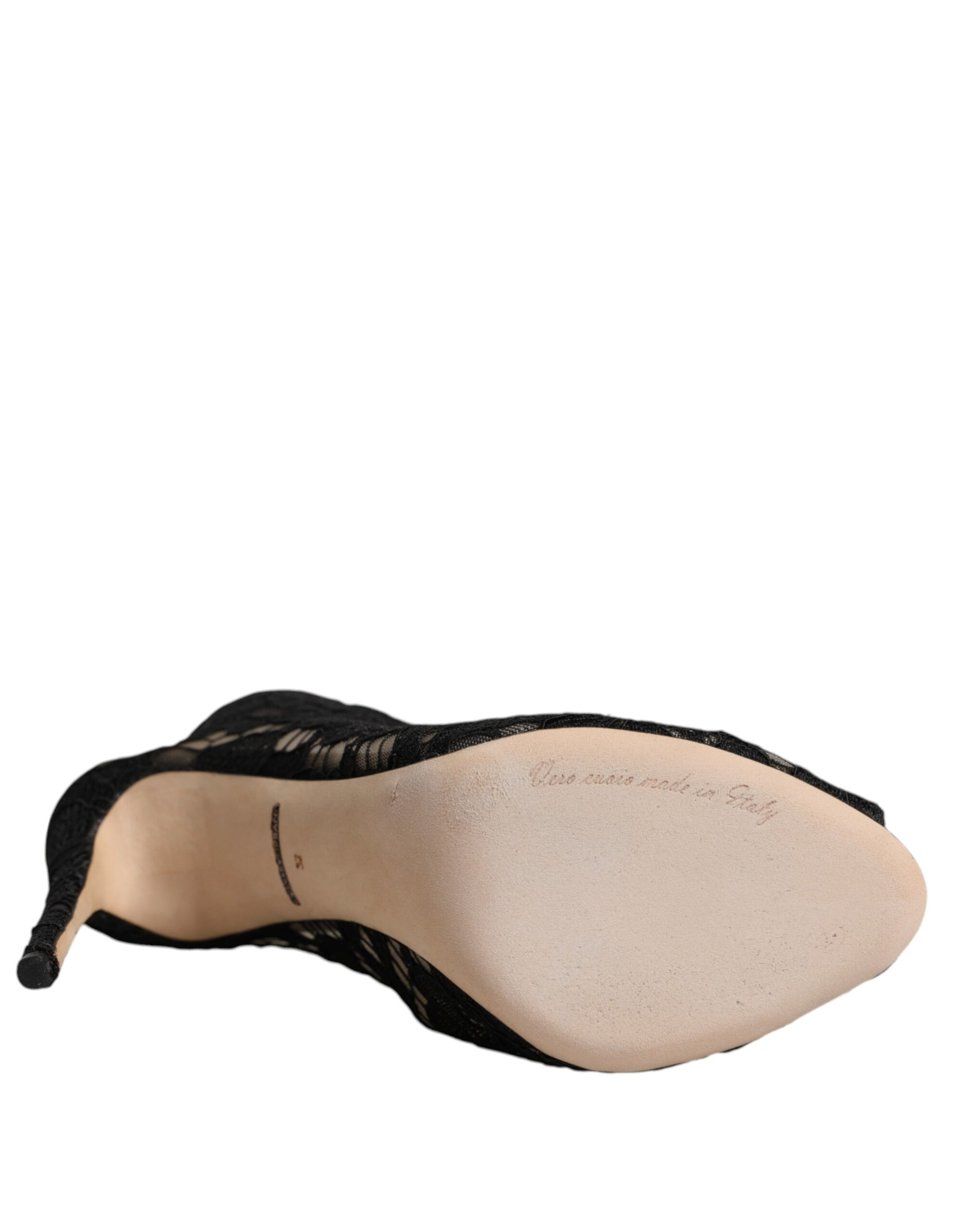 Dolce & Gabbana Black Floral Lace Heels Ankle Boots Shoes
