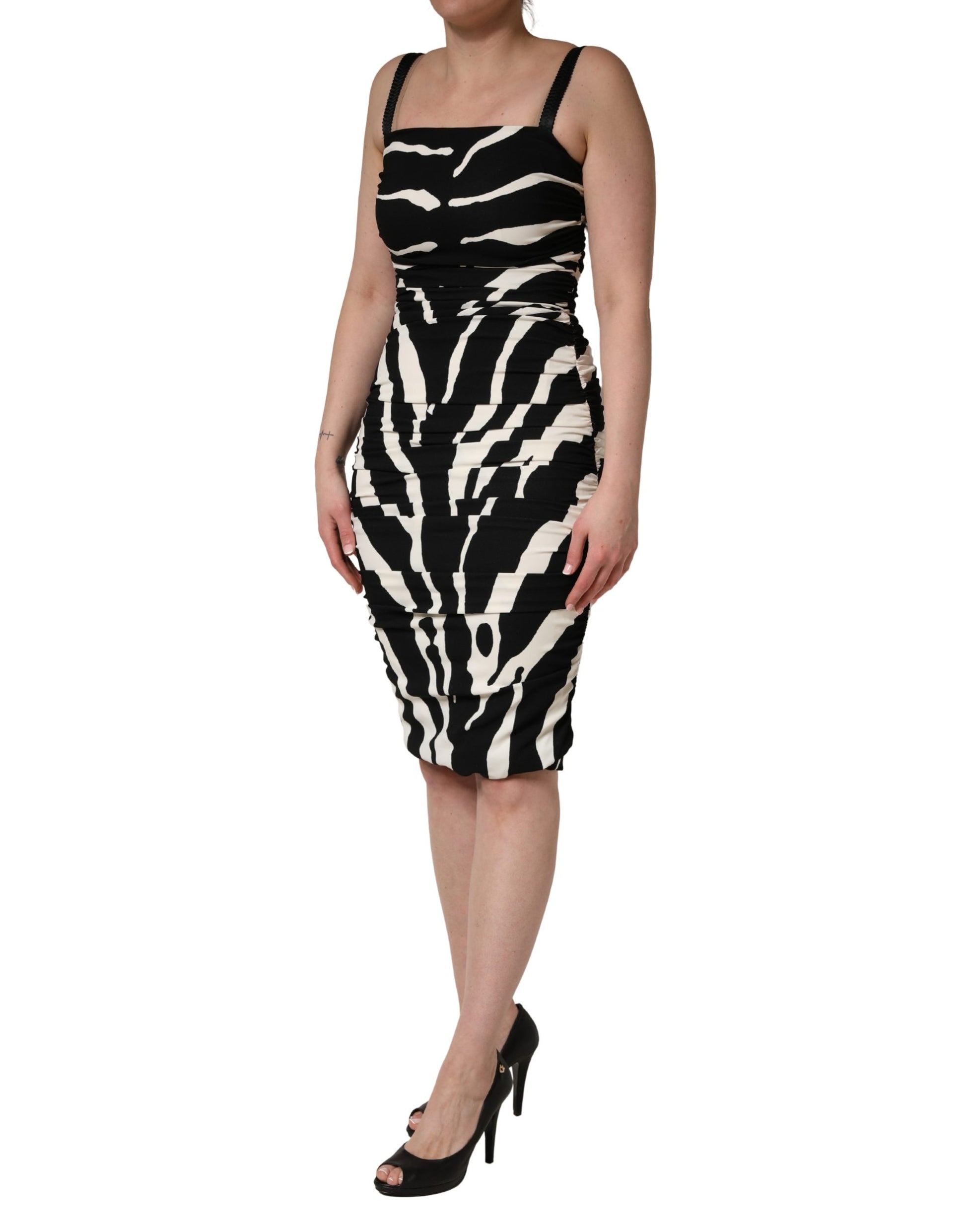Dolce & Gabbana Black White Zebra Print CadyCalf Length Dress