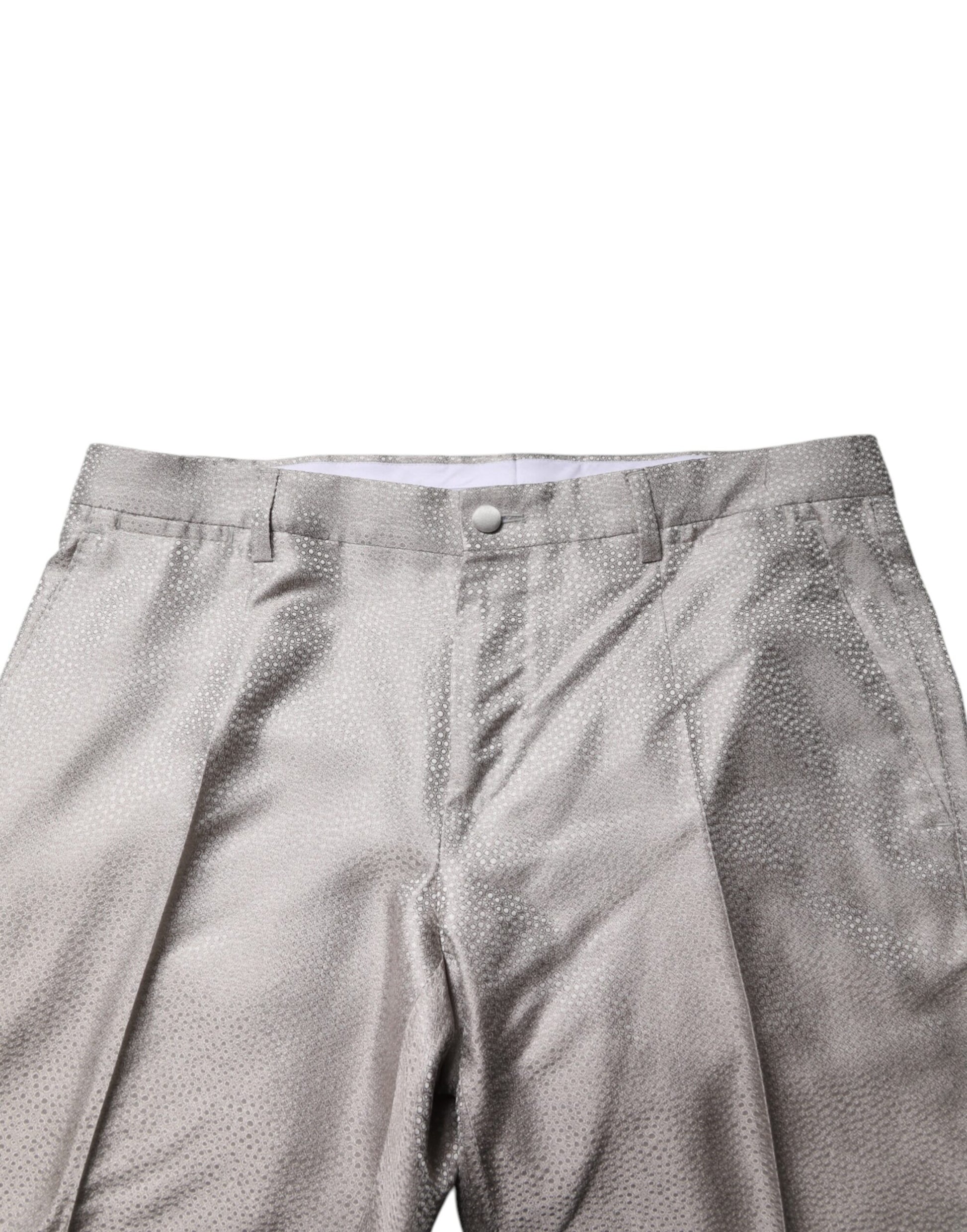 Dolce & Gabbana Light Gray Jacquard Silk Dotted 2 Piece Suit