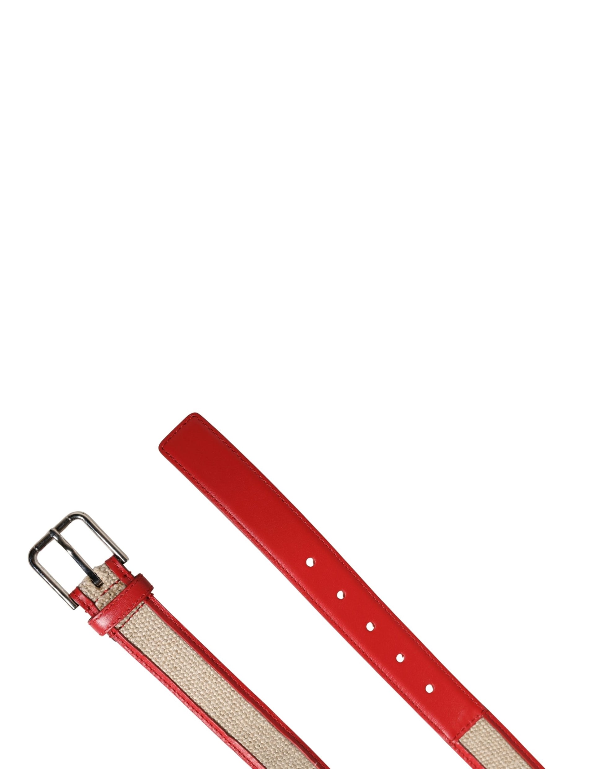Dolce & Gabbana Men Beige Red Woven Leather Metal Buckle Belt