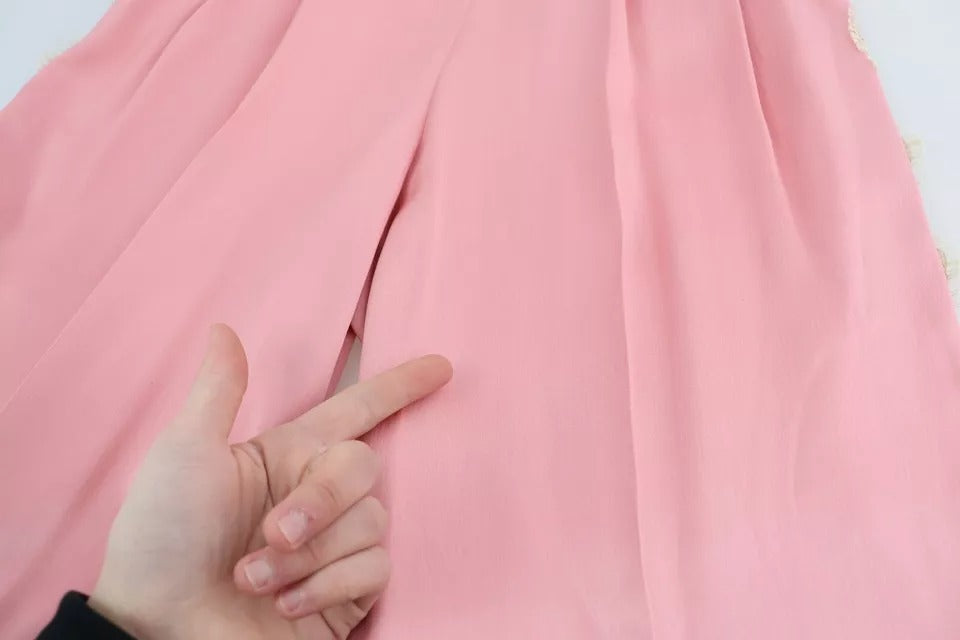 Dolce & Gabbana Pink Lace Trimmed Silk Satin Wide Legs Pants