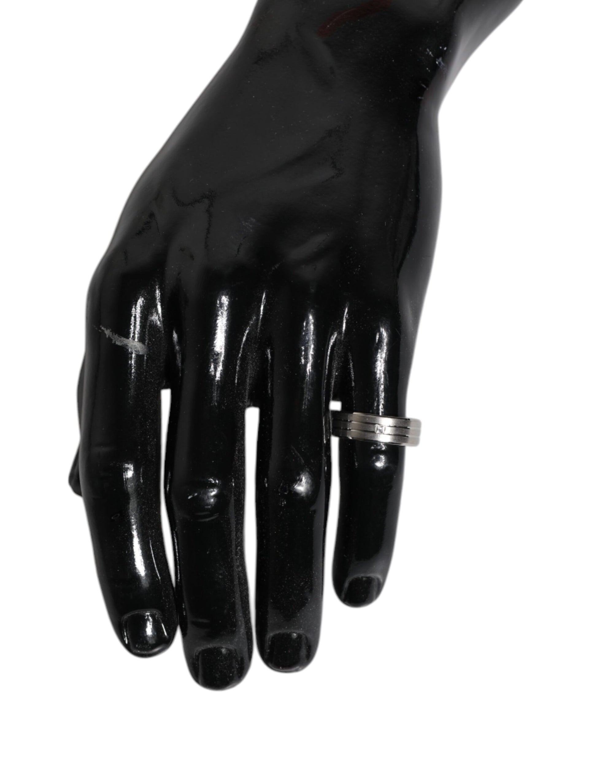 Dolce & Gabbana Silver Tone Brass Clear Crystal DG Logo Ring