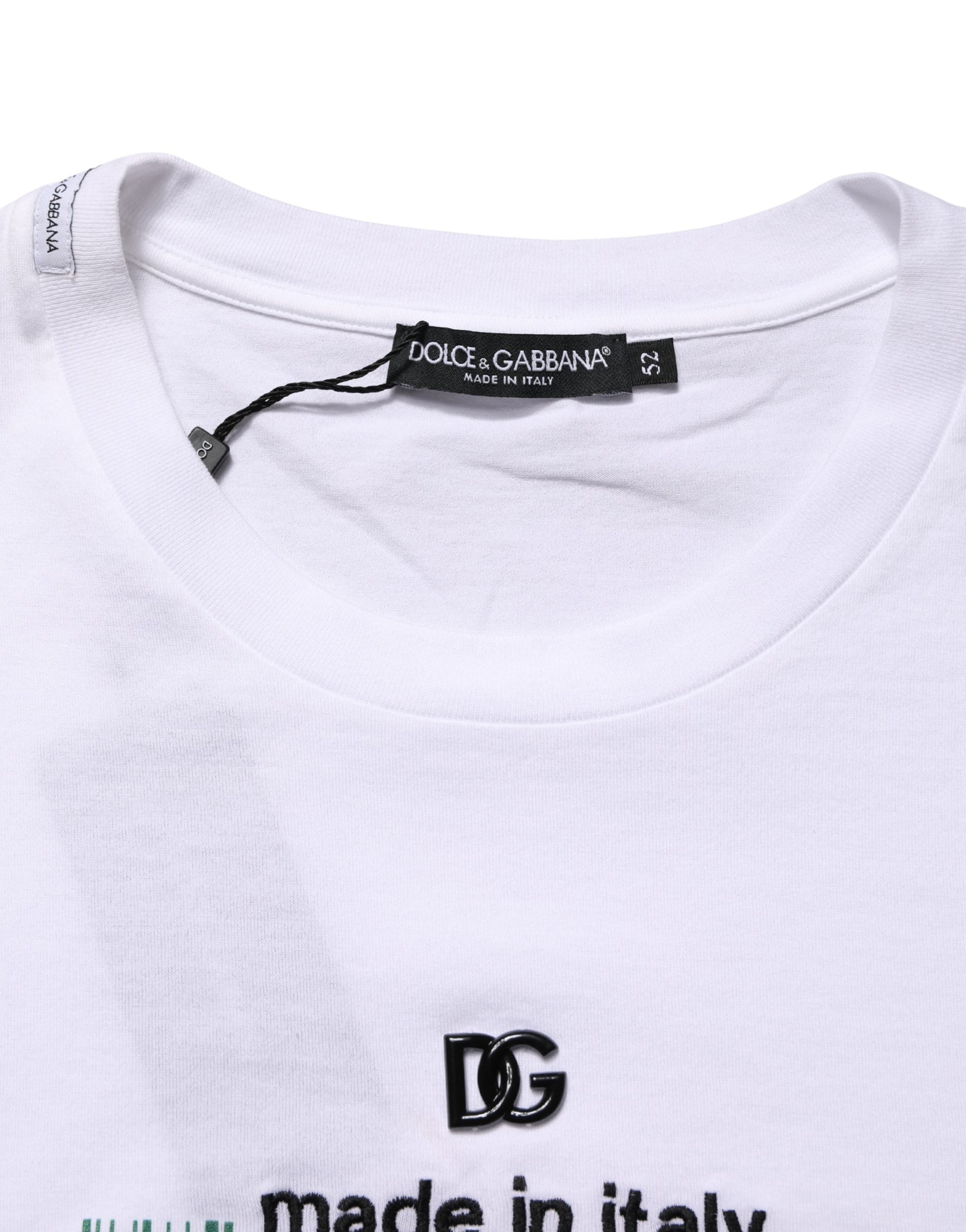 Dolce & Gabbana White Barcode Print Cotton Crew Neck T-shirt