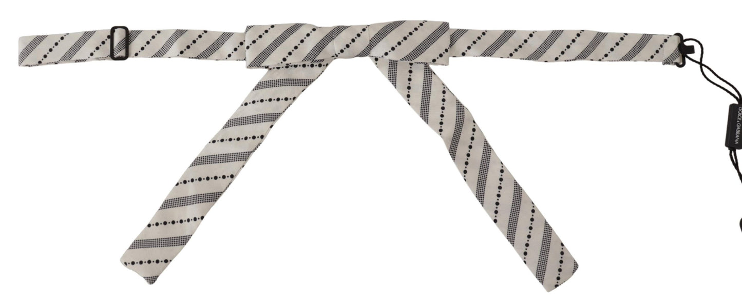 Dolce & Gabbana White Black Polka Dot 100% Silk Neck Papillon Bow Tie