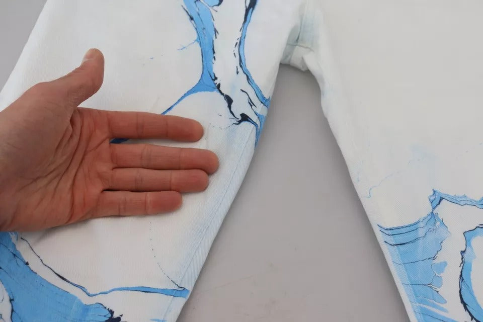 Dolce & Gabbana White Blue Cotton Skinny Denim Jeans