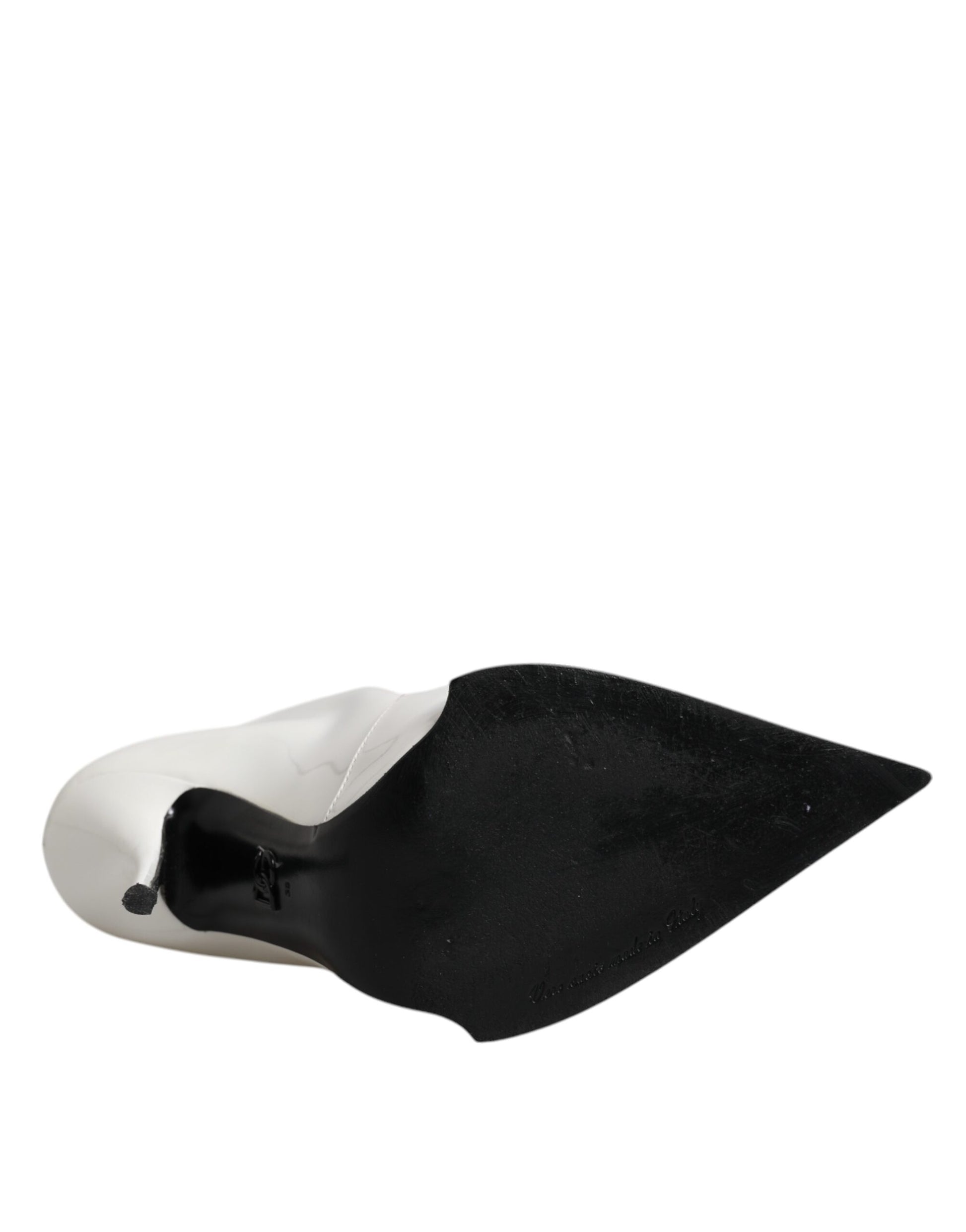 Dolce & Gabbana White Faux Pearl Leather Pointed Toe Ankle Boot Shoes