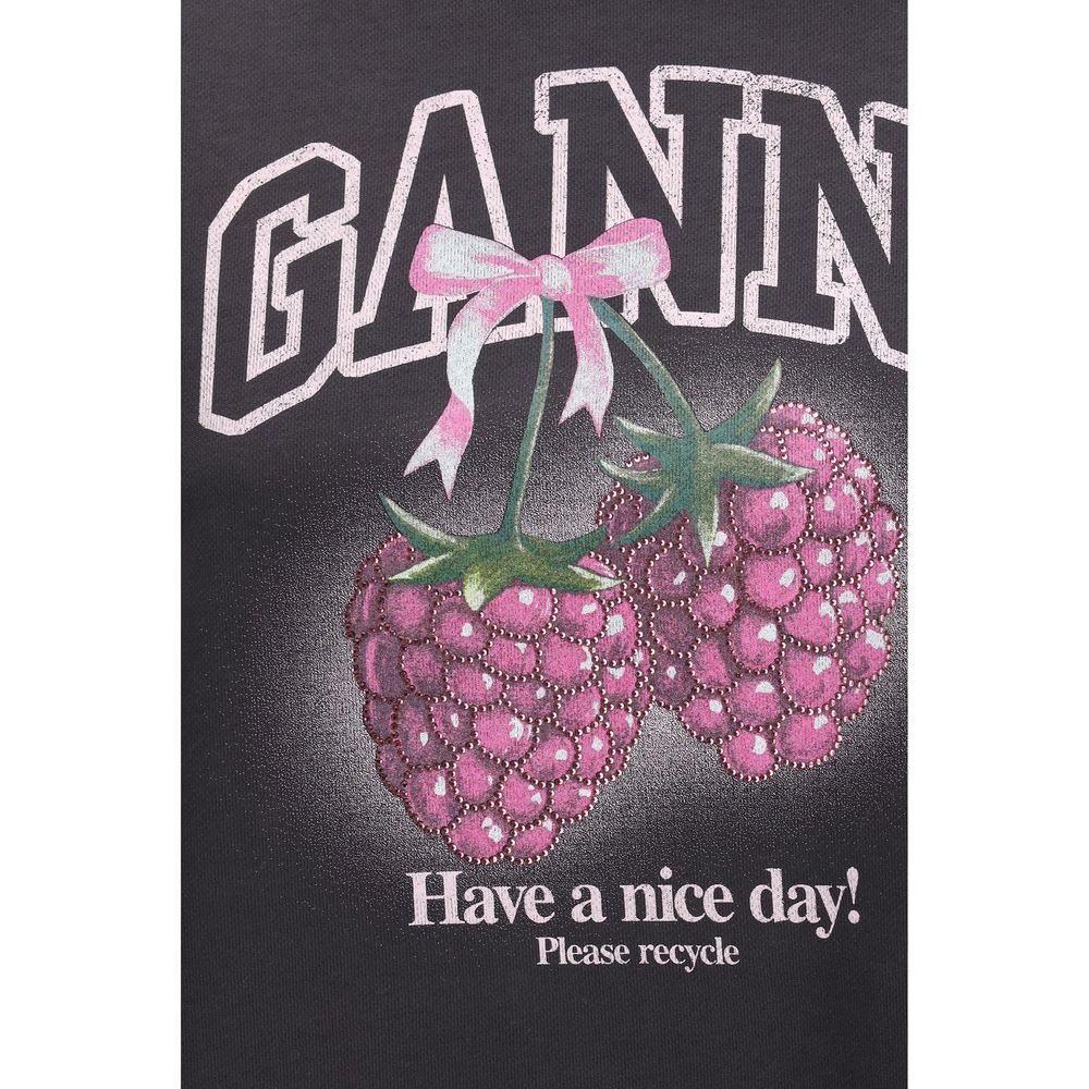 The crewneck Sweatshirt with Raspberries featuring a round neckline and long sleeves by Ganni blends playful spirit with contemporary awareness in a bold visual design. The Ganni logo is paired with a raspberry print graphic, while the “Have a nice day! Please recycle” message is embellished with rhinestones for a luminous, eye-catching effect. The clean construction enhances comfort and versatility, making this Sweatshirt by Ganni a distinctive piece with a fun yet conscious attitude.