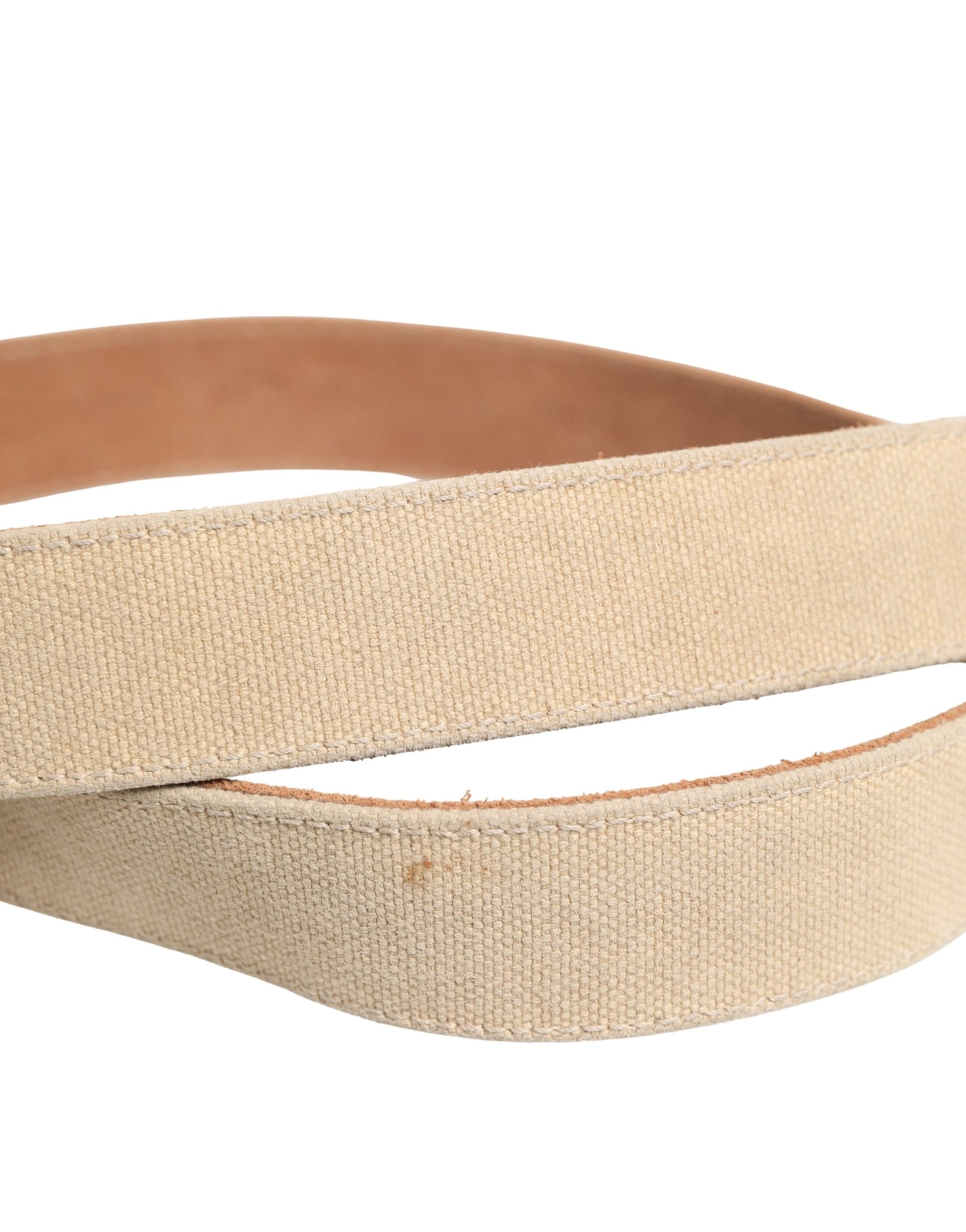 GF Ferre Men Beige Canvas Silver Metal Buckle Cintura Belt