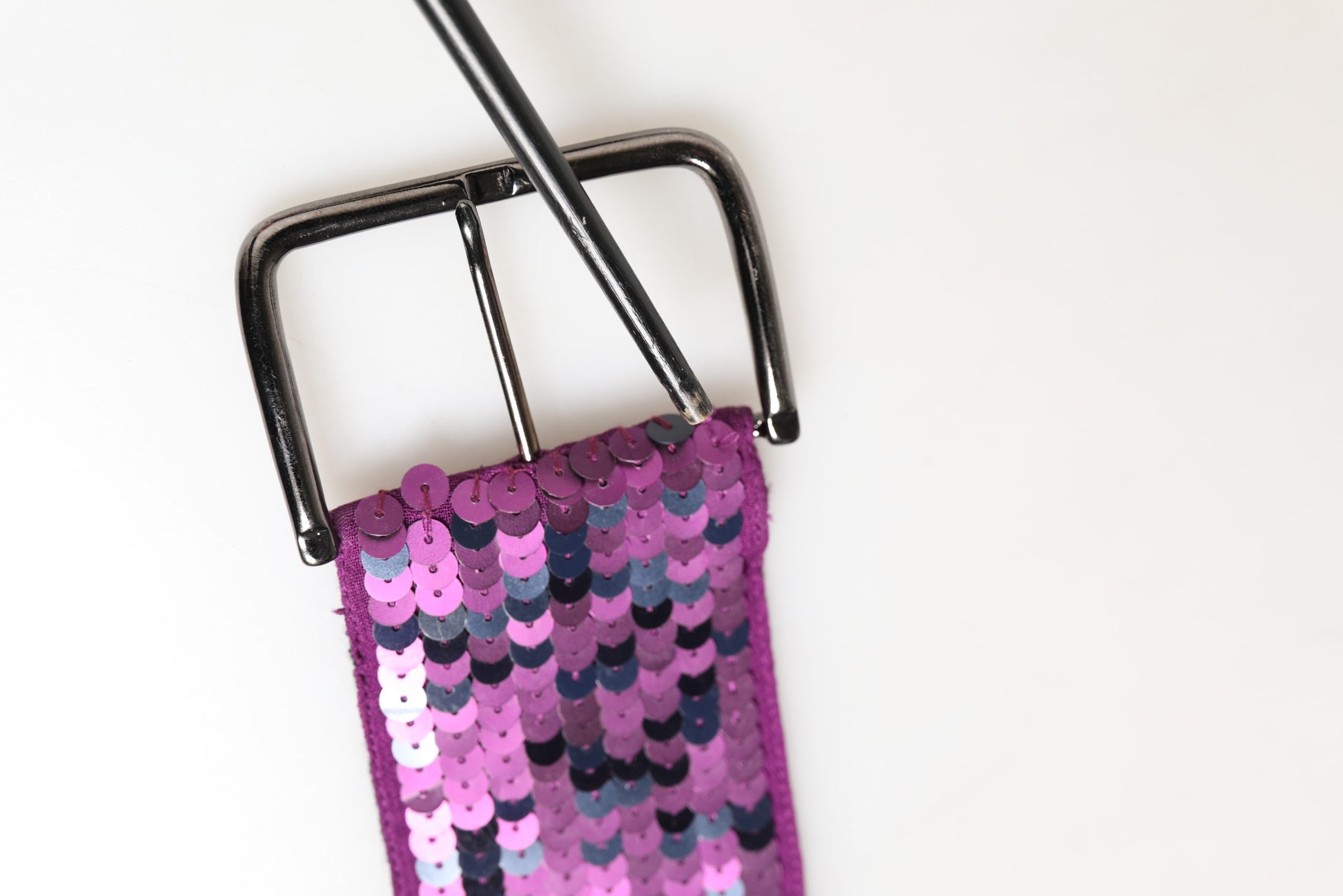 GF Ferre Women Purple Sequined Silver Metal Buckle Belt